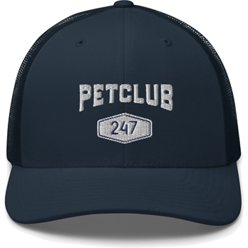 This trucker hat is popular with both men and women. It is low-profile and has a mesh back for breathability. The PetClub247 logo is embroidered with white thread.